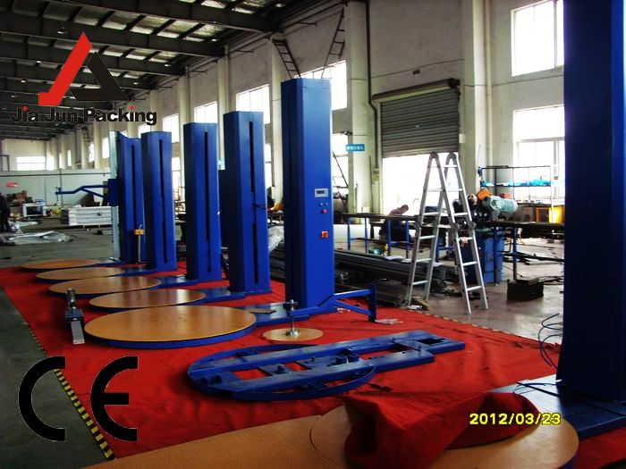 2、自動(dòng)纏繞方法:使拉伸膜纏繞機(jī)處于初始狀態(tài),放上貨物,穿好薄膜,選擇上下圈數(shù)、上下次數(shù)、越頂時(shí)間,按自動(dòng)啟動(dòng)按鈕后,整個(gè)過程自動(dòng)完成
