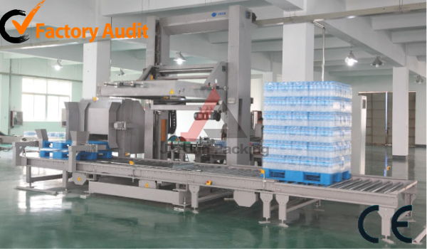 全自動碼垛機(jī)是整托盤放入托盤堆放區(qū),開機(jī)后滿足條件及要求后,重托盤輸送裝置首先將堆垛結(jié)束的重托盤送至出口,隨后自動上托盤,再自動對流水線上的圓柱平頂型馬口鐵桶或塑料桶進(jìn)行自動整理,全自動碼垛機(jī)按要求分層堆放到規(guī)定托盤上的自動設(shè)備。