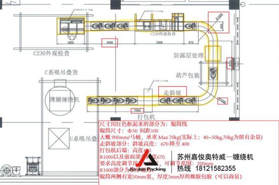 2. 輸送滾筒采用50無(wú)動(dòng)力了鍍鋅套膠,安裝中心距為100mm,有效輸送寬度600mm